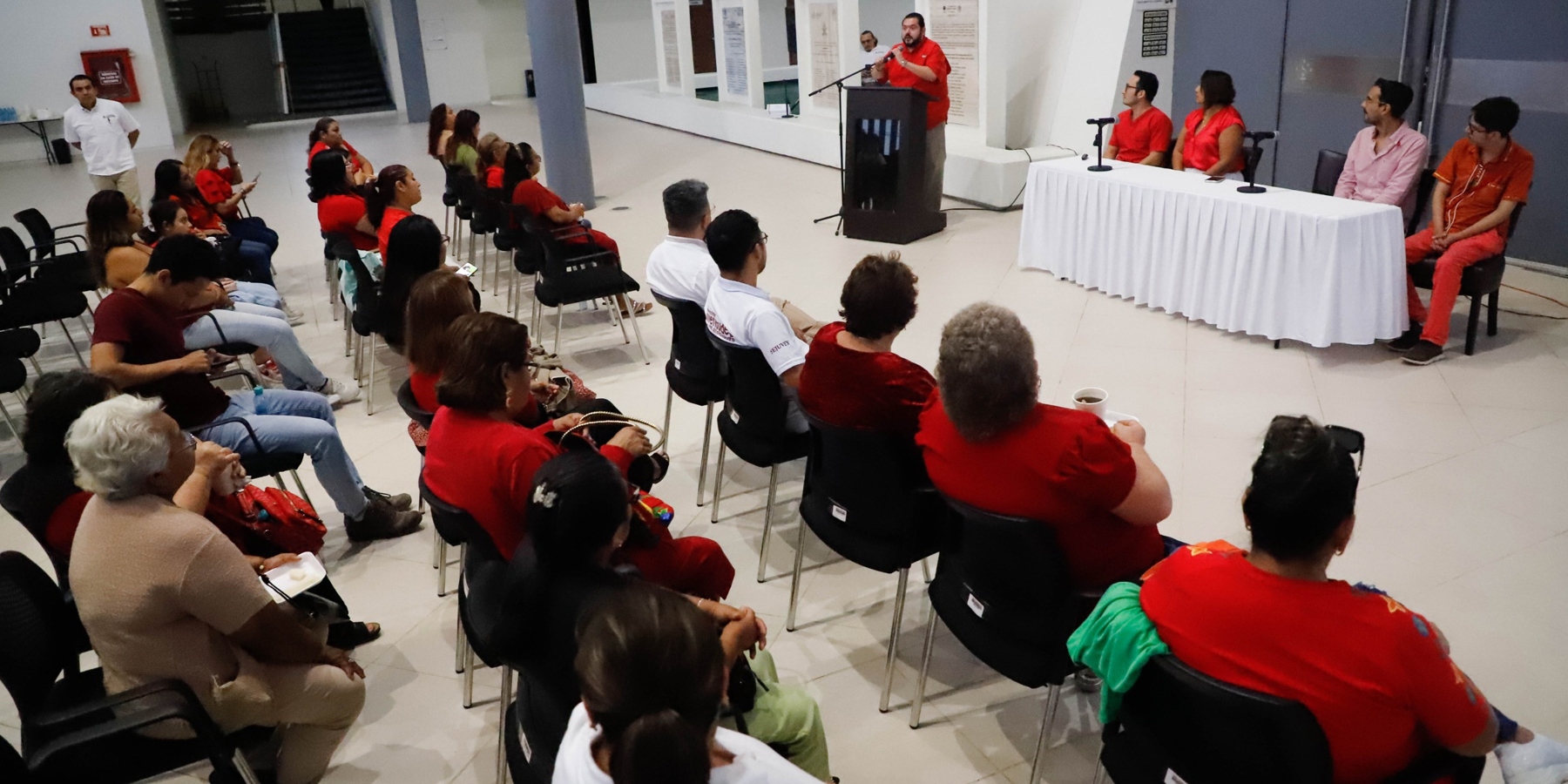 En la actividad estuvieron presentes, la diputada del PAN, Manuela Cocom Bolio; Luis Ramírez Beltrán; César Briceño Castro, jefe de departamento para la inclusión de las personas de la diversidad de la Secretaría de las Juventudes; así como personas de la sociedad civil y, al término del evento, la sede del Legislativo se iluminó de color rojo sumándose al llamado por continuar uniendo fuerzas en la lucha contra el VIH en la entidad.